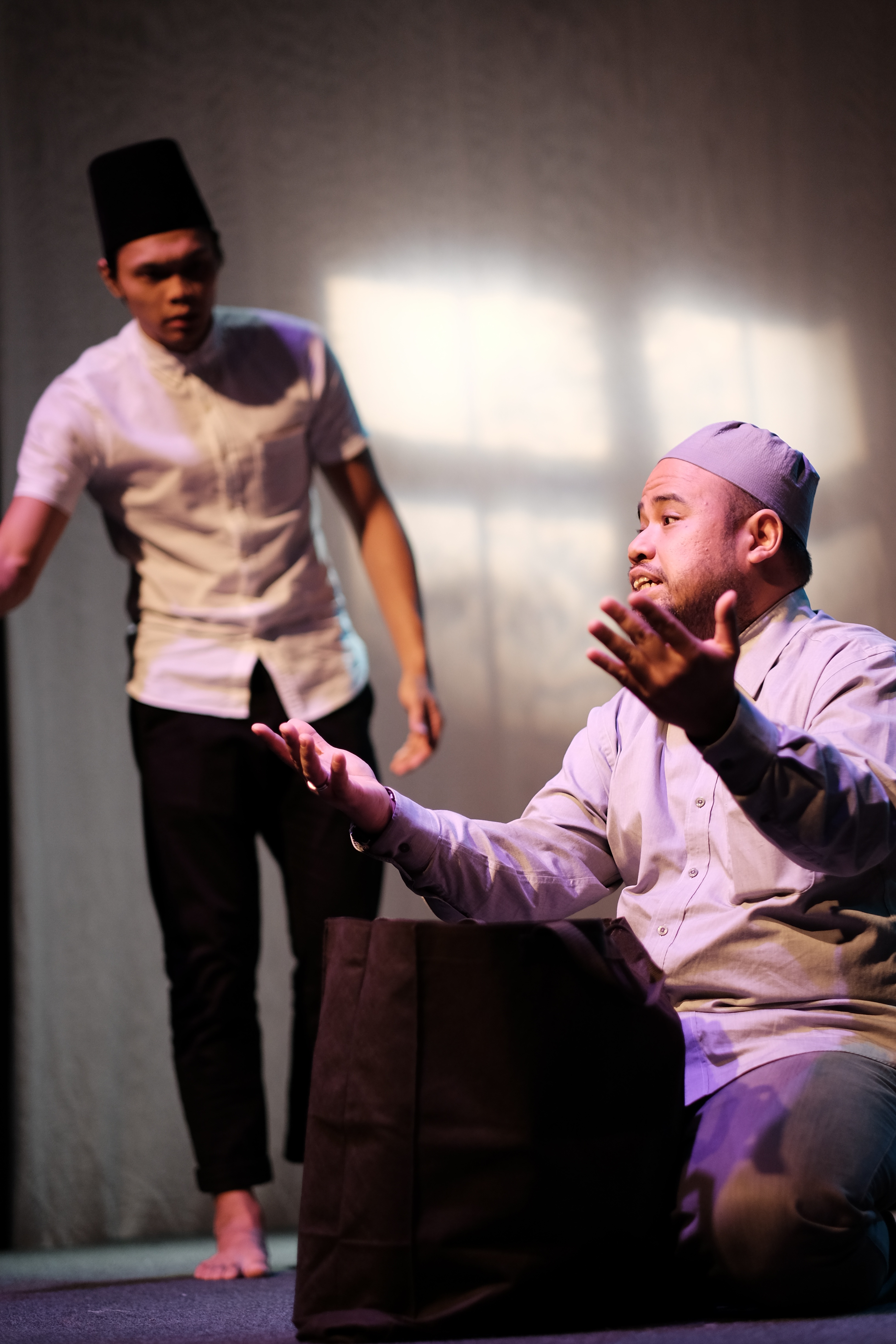而另一方面,为了推展剧情,剧作又设置了一个叫做Zaki(由Al-Matin Yatim饰演)的穆斯林情场浪荡子的角色。此人也相当有意思,他表面上是说自己来Siti处,是为了在葬礼上“关怀”同教的姐妹,实际上是过来寻找“情人”。正因为如此,有着不正当目的的Zaki和Siti才会发展出有趣的对话,并且在这个过程中,Siti慢慢反思自我生命中的爱与信任。当然,Zaki 这个人物的娱乐性(调动舞台表演的观赏趣味)多过于叙事性(在剧情推动上的贡献)。尤其是Zaki的夸张的喜剧化的诙谐动作与语言,无时无刻不引起现场观众的哄堂大笑,和身处两难境地的Siti形成鲜明对比。