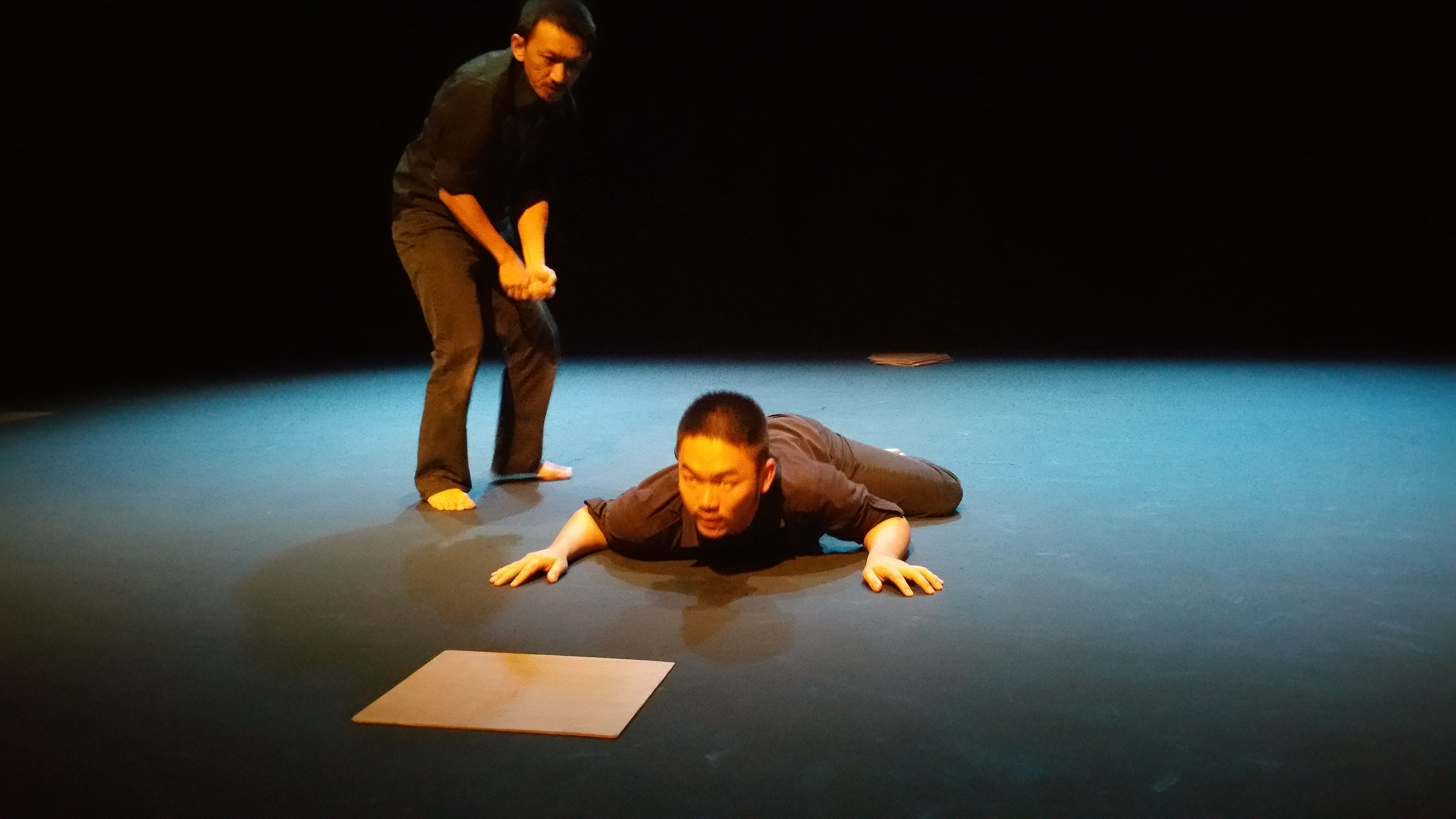 整出戏的设置看似非常简单,实则在简单的二元中生出无穷变化。两种颜色的板子,金和银,或许暗示生与死,但变化出的意象丰富,灯光也围绕这两种颜色投映。舞台上呈现许多切线,或相交或平行,随着两位演员的动作展开。演员的身体与声音都被开发到极致,而富有弹性,才能几番交替几番重叠,以自然人声,营造出一咏三叹的戏剧效果。这部戏的语言是非常文学性的,甚至可以说是马华文学性的,而它不断穿插的叙事结构也类似小说的处理,节奏感极佳。马华作家在小说语言上十分讲究,做得很好,此剧编导高俊耀也延续了这种才华,叙述语言简练精准,留有余味。但太过小说化的语言与结构,也偶有生硬之感,尤其在第一视角的叙述者阿弟抛出一些生死质问时,太直接而显粗糙,与余味抗衡。《死亡纪事》令我难免联想到本地著名的剧作《棺材太大洞太小》,同样是以丧礼为题材,同样牵扯到体制与规范,同样以生死探讨更广阔丰富的议题,同样精炼成熟的语言风格。而不同的是,《棺材太大洞太小》的标题明确提出了一种核心矛盾,它像一根尖利的针刺破了一大片平静,处处都痛,于是那么多改编和评论,我们乐此不疲地去寻找那些痛的位置。而《死亡纪事》的标题是笼统而囊括的,它是一片黑压压的密云,阴沉了每个角落,在其中,我们惴惴不安,忙着确立自己的位置,每一个都不对。