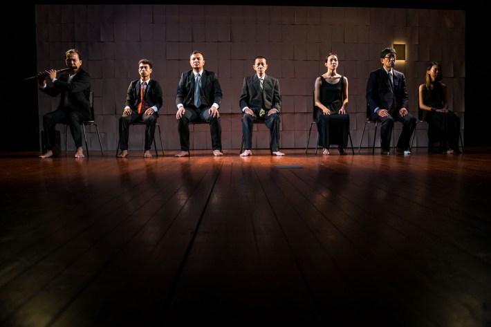 演出最后一幕或许暗示了答案。全体演员坐一排,谢其龙吹奏经典歌曲《昴》。Didik 之前以日文原词清唱,现在再次响起,我看着眼前这七位艺术家,我感觉到这首歌是一种对他们以及世上所有艺术工作者内心的召唤。我发现,艺术不是什么远大的理想和目标,而是像《昴》里描述的星群的象征,是人性里原始却闪耀的光。艺术家在做的,就是探寻这道光。如果艺术家不能遵循最真实的内心想法,或不能运用最敏感的感受和体会,他就无法很好地去探索人性。制度、政策、科技,都是可以存在于艺术发展中的,但它们不可以阻碍艺术家探索人性的方式。如果受到阻碍,那道光就一直隐藏在如宇宙般的黑暗中。